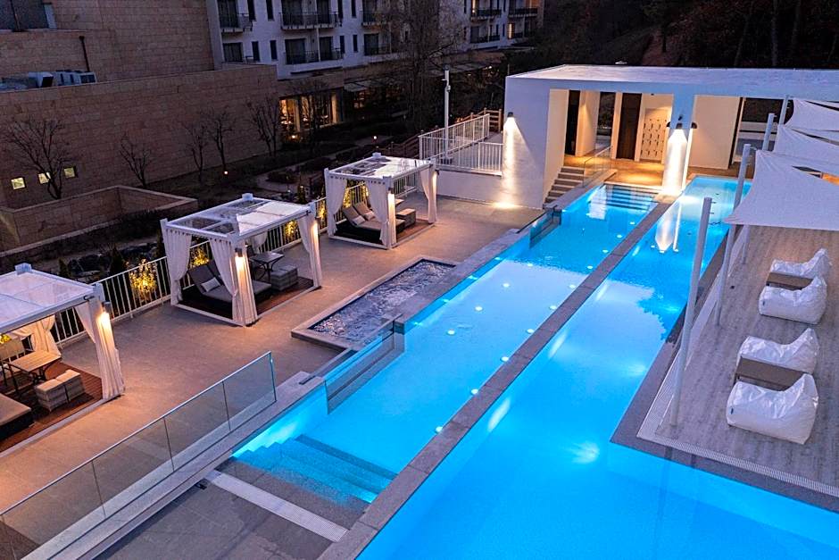 Guests will have a special experience as this suite offers a hot tub. This spacious suite is consisted of of 1 living room, 2 separate bedrooms and 3 bathrooms with a bath and a shower. This suite features air conditioning, a tea and coffee maker, a flat-screen TV with satellite channels and a terrace. The unit offers 2 beds.